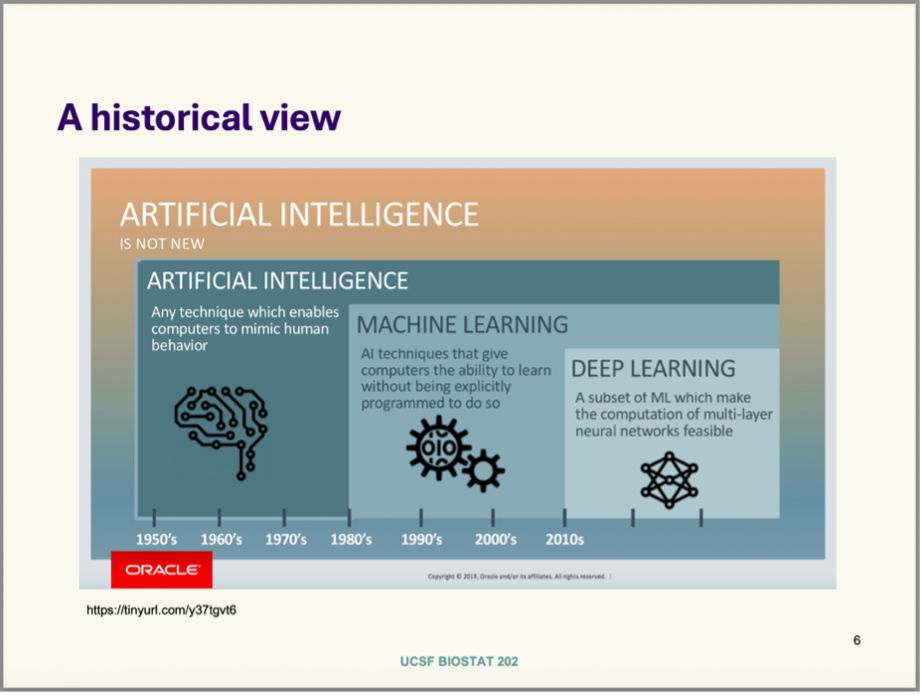 [1] Karla Lindquist. “BIOSTAT 202: Opportunities and Challenges of Complex Biomedical Data: Introduction to the Science of ‘Big Data’ - LECTURE 4: Introduction to Machine Learning & Supervised Learning (Regression).” Summer 2024. San Francisco. Microsoft PowerPoint presentation. Slide 6 – using a graph produced by Oracle (*On 12 Jan. 2026, at the time this opinion piece was written, the authorcould not access the original Oracle source that first published the graph).